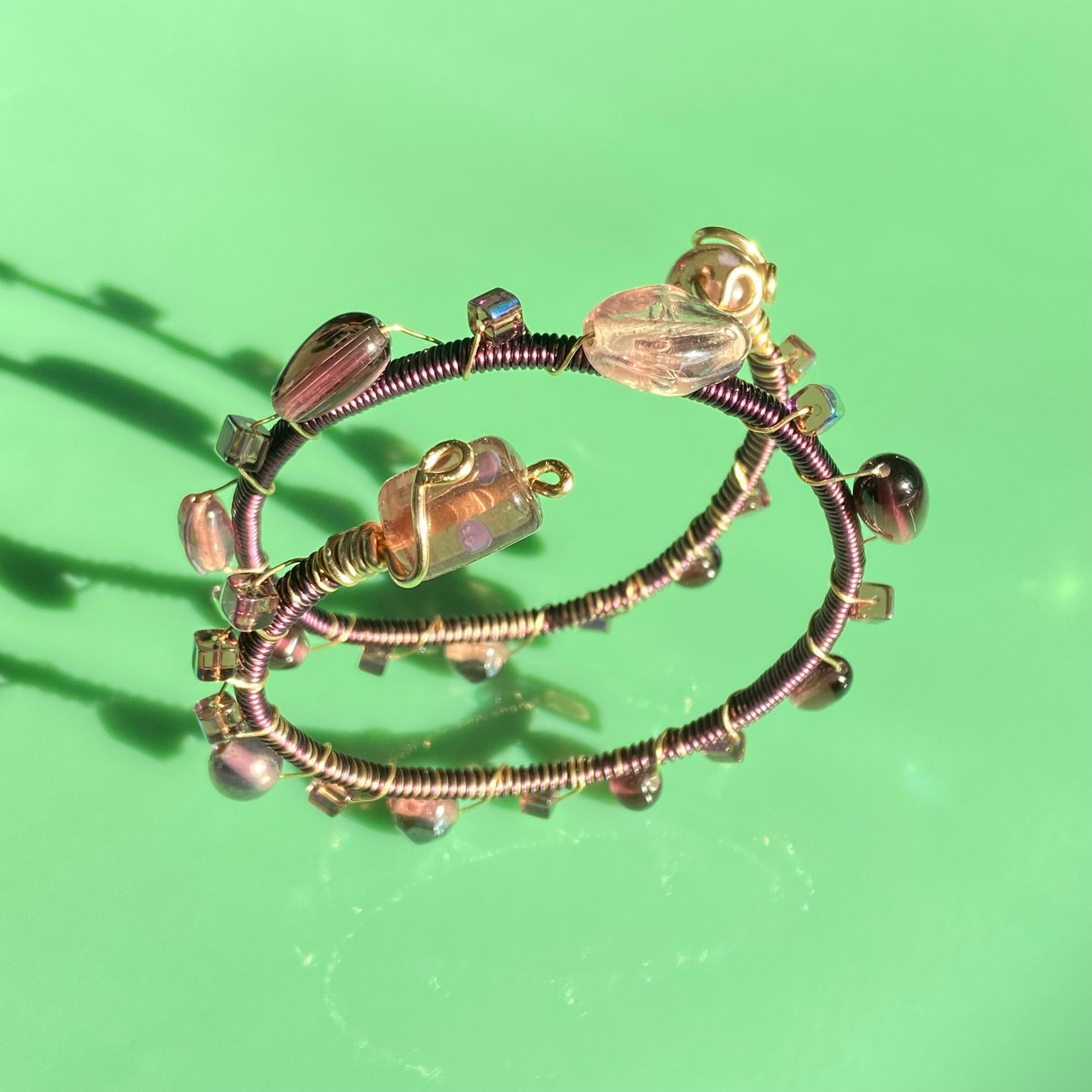 15” features plum & gold coated copper arm wrapped with purple glass bead details.